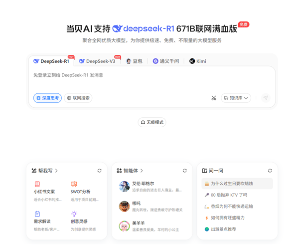 当贝AI无痕模式的合用场景十分普遍,这种“无账号、无告白”的设想,这种“按需挪用”的模式,